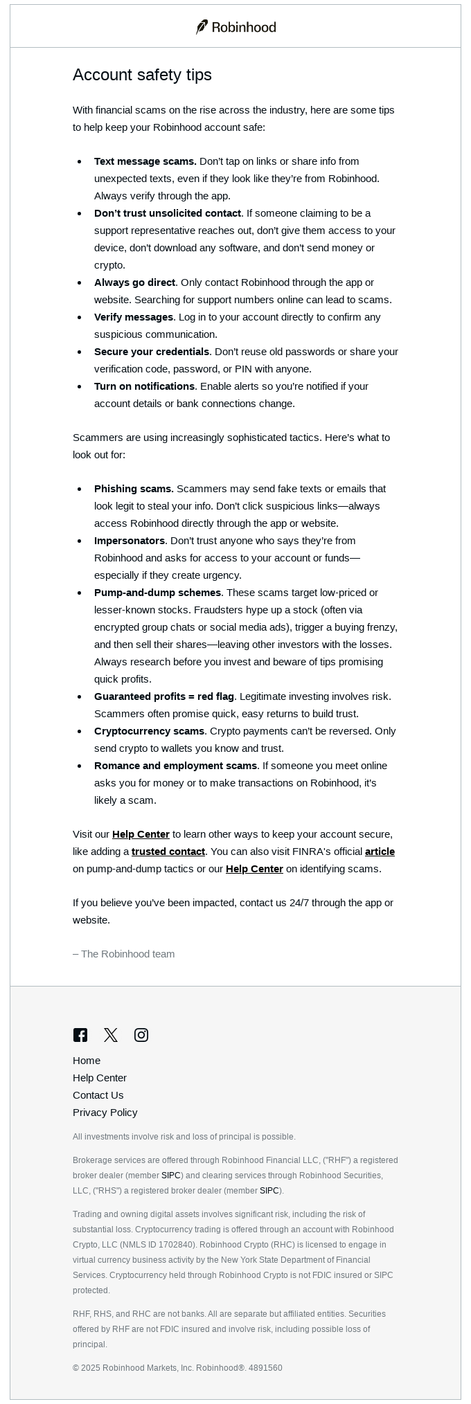 As you can see in the table below, the email is a simple, text-heavy, one-column layout from Robinhood. The results were solid. On Gmail and Outlook 365, the rendering was clean and readable. It also looked good on mobile devices.